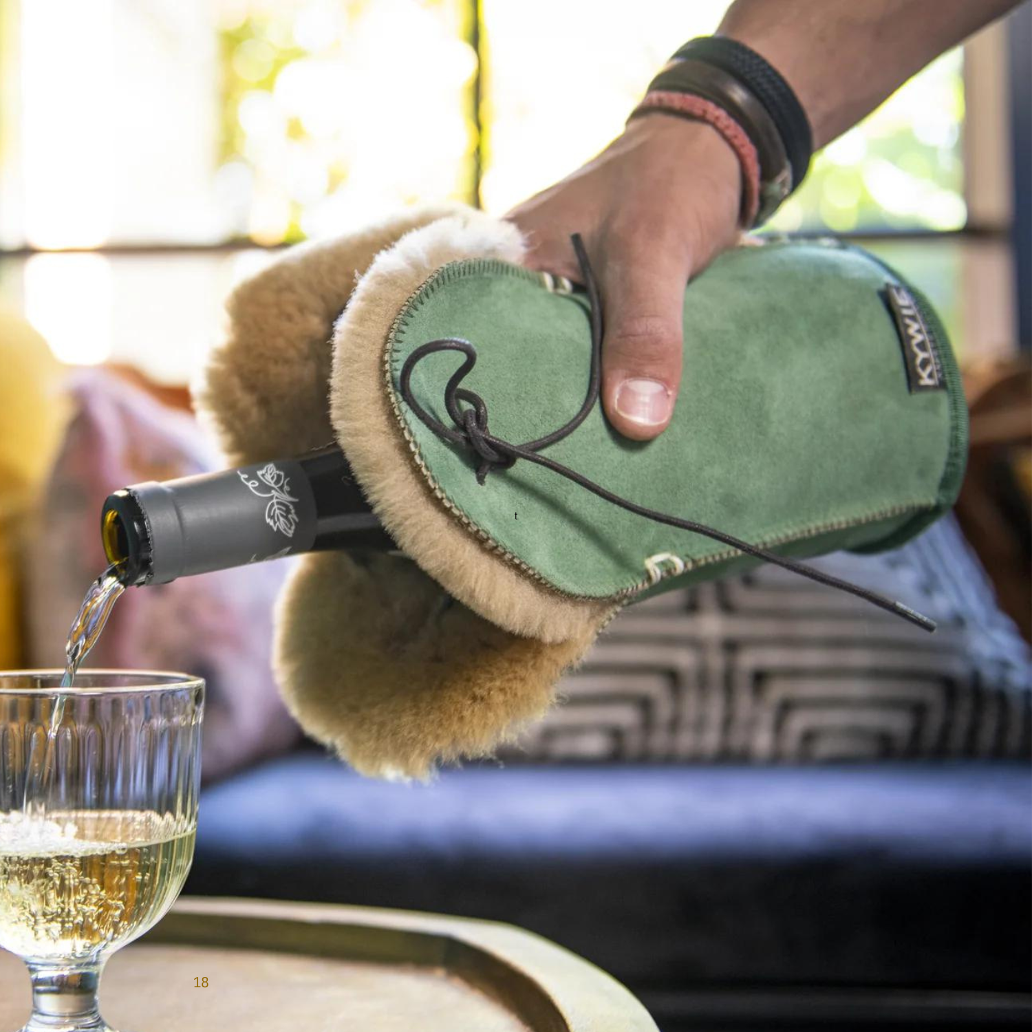 Der KYWIE Champagnerkühler aus echtem Schafsfell hält vorgekühlte Getränke zuverlässig kalt – ganz ohne Eis oder Strom. Die natürlichen Isoliereigenschaften der Wolle und die Lederschnur als Luftschleuse sorgen dafür, dass Champagner, Sekt oder Apfelwein bis zu 4 Stunden ihre Temperatur behalten.