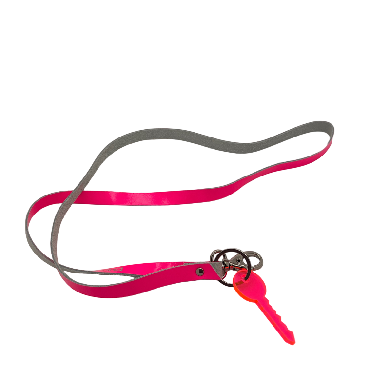 Dieses stilvolle Schlüsselband aus hochwertigem Rindleder ist der ideale Begleiter für unterwegs. Mit einer Länge von 90 cm lässt es sich bequem um den Hals tragen oder schnell aus der Tasche ziehen. Der neon-orange Perspex-Schlüssel setzt einen auffälligen Farbakzent und sorgt für gute Sichtbarkeit – funktional und modisch zugleich.
