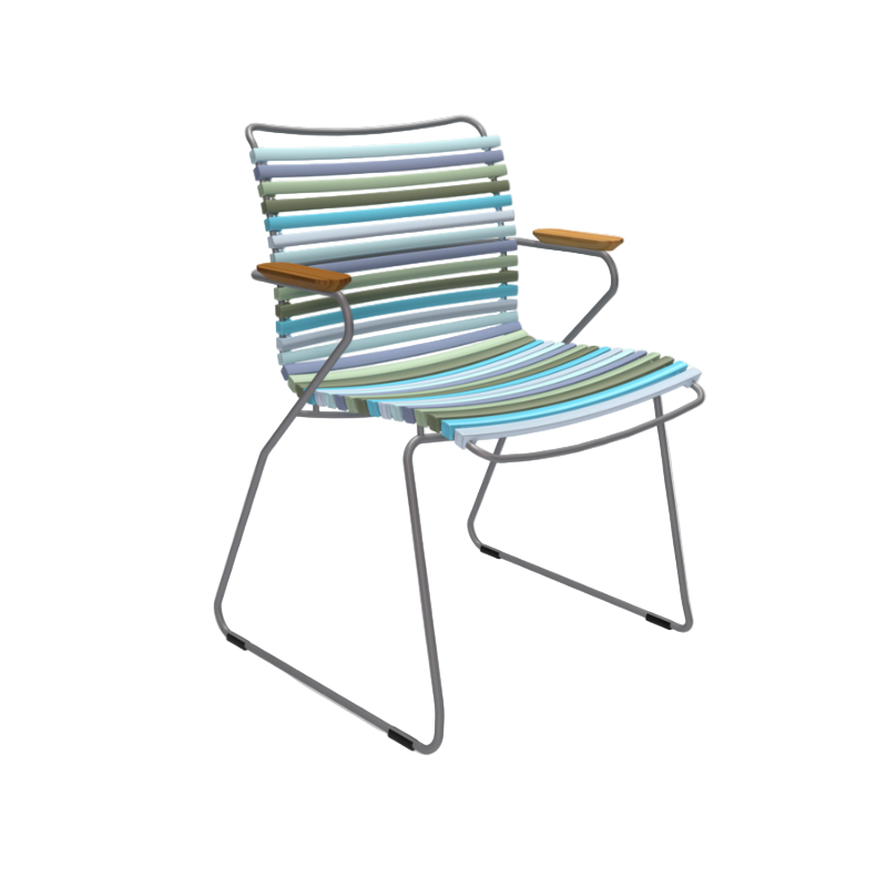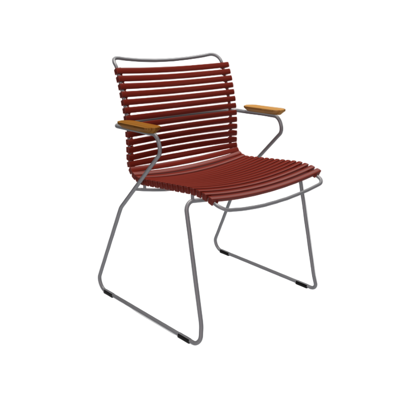 Der CLICK Stuhl mit Armlehne verbindet skandinavisches Design mit hohem Sitzkomfort. Die Bambusarmlehnen sorgen für eine natürliche Haptik, während die flexiblen Lamellen sich dem Körper anpassen – ganz ohne Polsterung. Ideal für lange Abende am Tisch, drinnen wie draußen.